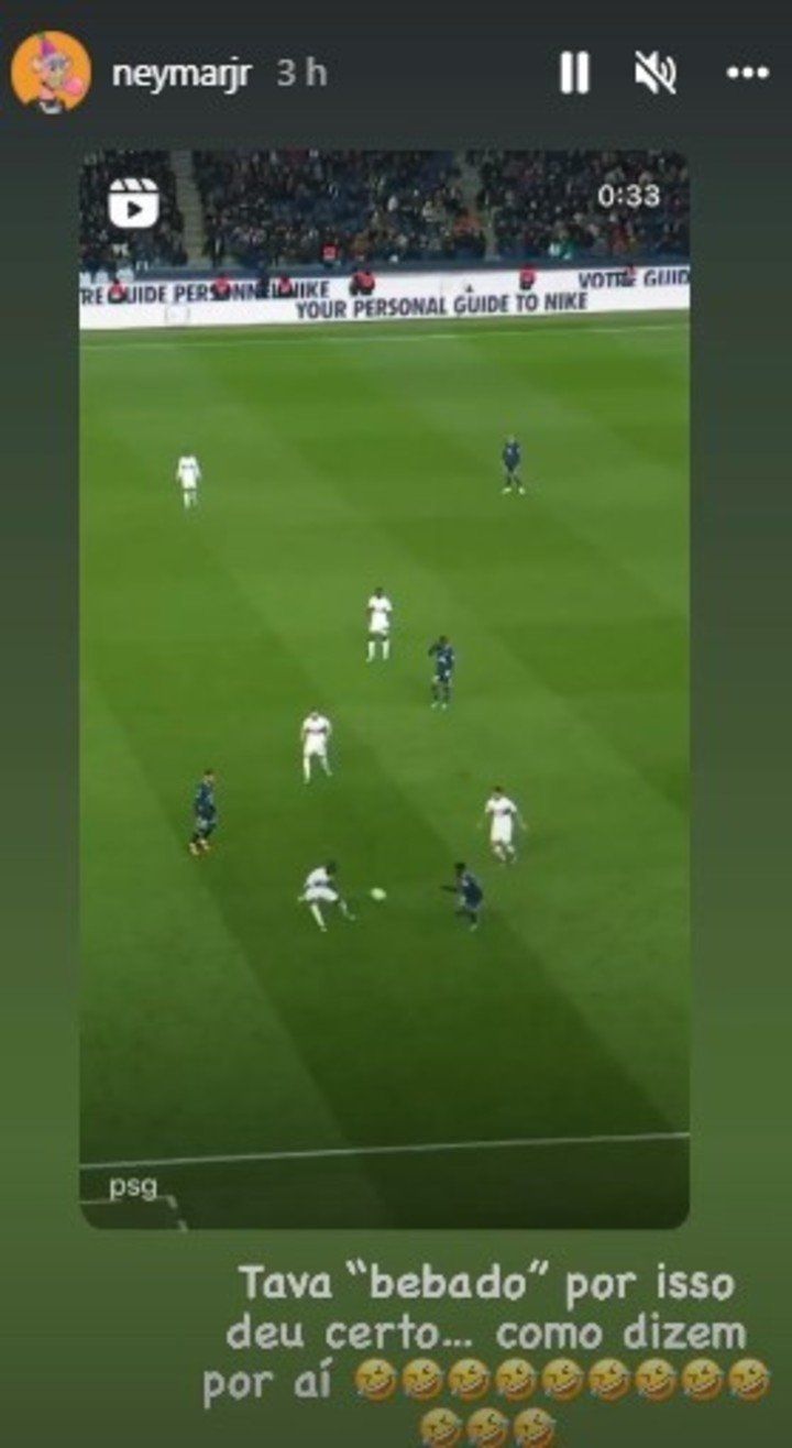 El astro brasilero subió a sus historias de Instagram el video de uno de los goles que hizo el fin de semana y escribió: “Estaba borracho, por eso funcionó... como dicen por ahí”.