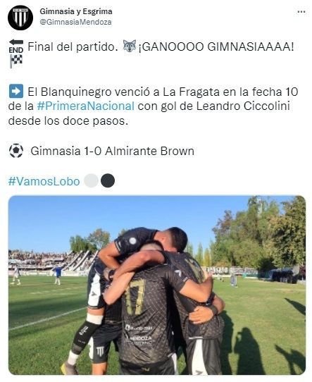 Gimnasia logró una victoria clave en su lucha por acortar distancias con los, hasta ahora, clasificados para jugar por uno de los ascensos a la Liga Profesional. El Lobo se enfrentó a Almirante Brown, un candidato a pelear por el campeonato, y lo venció por la mínima diferencia gracias a un tanto de Leandro Ciccolini cerca del final del duelo.