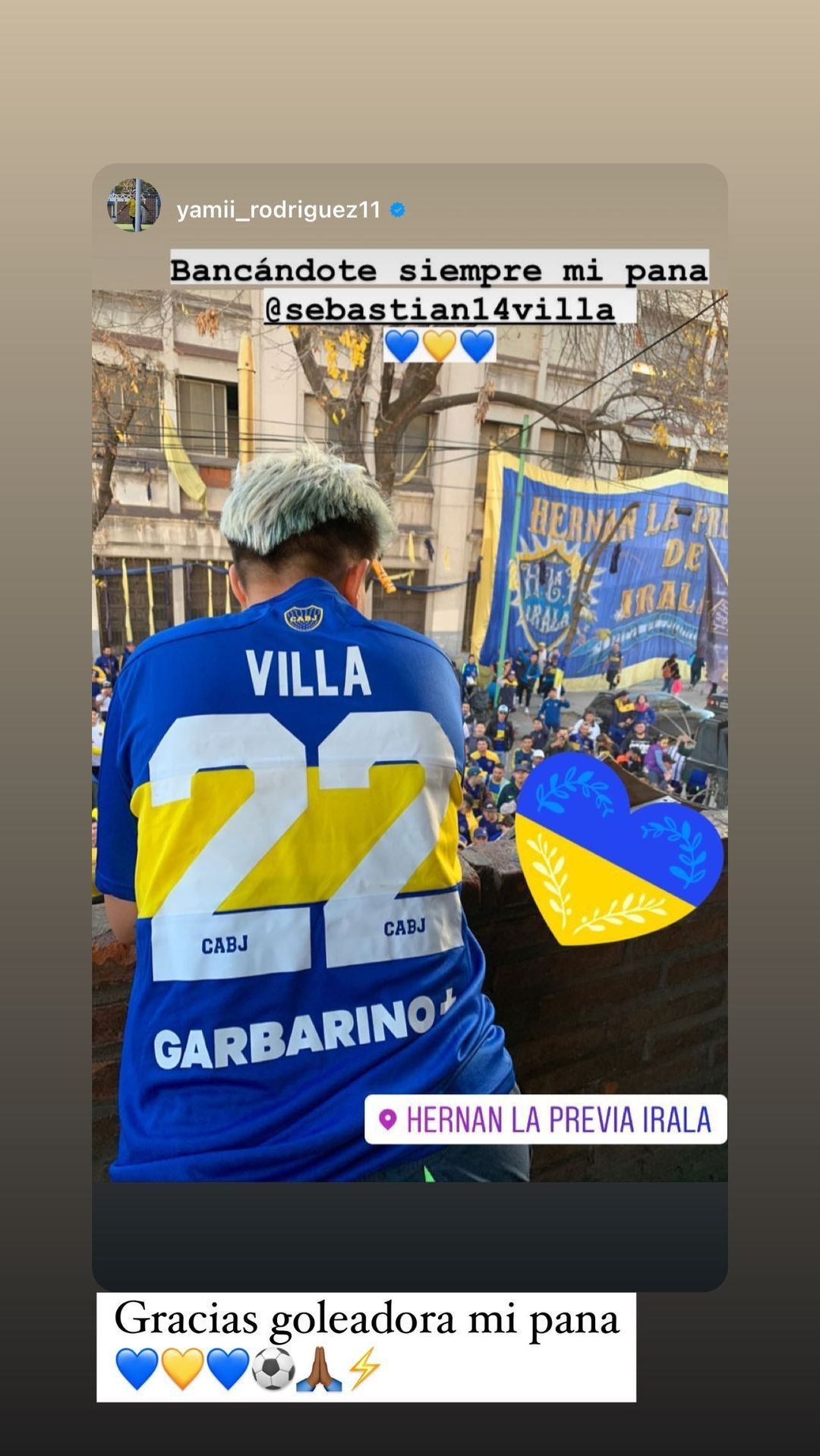 La atacante del Xeneize y de la Selección Argentina publicó una historia en sus cuentas de Instagram y Twitter en la previa del choque ante la Academia, donde se la podía ver luciendo la camiseta número 22 del extremo. Esto causó indignación en mucha gente, ya que se trataba de una de las máximas exponentes del fútbol femenino en la Argentina y estaba apoyando al hombre que tenía tamañas denuncias en su contra en el contexto de la violencia de género.