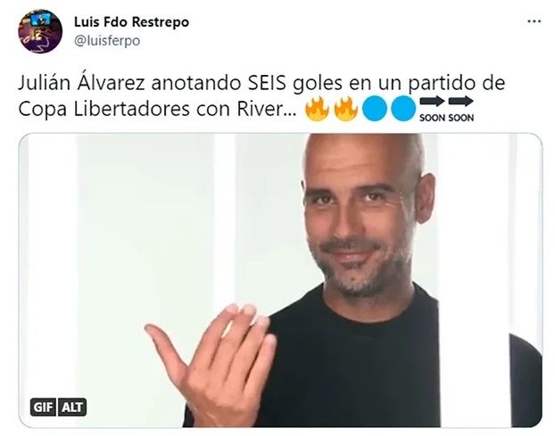 Julián Álvarez consiguió un récord histórico con los seis goles que le marcó a Alianza Lima, de Perú, en el aplastante 8-1 de River en el Mas Monumental, por la última fecha del Grupo F de la Libertadores. El Araña, además, igualó al formoseño Juan Carlos Sánchez, de Blooming, de Bolivia, el primer futbolista en marcar seis tantos en un mismo partido de Copa y las redes sociales se hicieron eco del tremendo logró con desopilantes reacciones y memes.