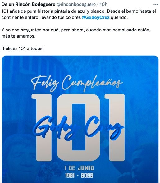 En las redes celebran hoy 1 de junio el aniversario del nacimiento de uno de los clubes más importantes de Mendoza.