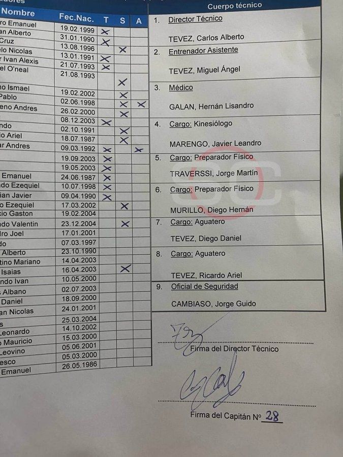 La primera planilla de Carlos Tevez en Rosario Central: ¿quién firmó como DT y quién como aguatero?