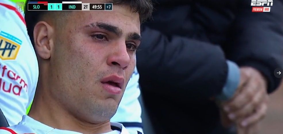 Inmediatamente los camilleros tuvieron que ingresar al campo de juego del Pedro Bidegain para poder sacar al jugador. Sin consuelo, y con marcadas muestras de dolor, se sentó en el banco de suplentes donde no podía parar de llorar. Una vez consumado el empate, entre tres compañeros lo llevaron en andas debido al fuerte dolor que siente en la zona.