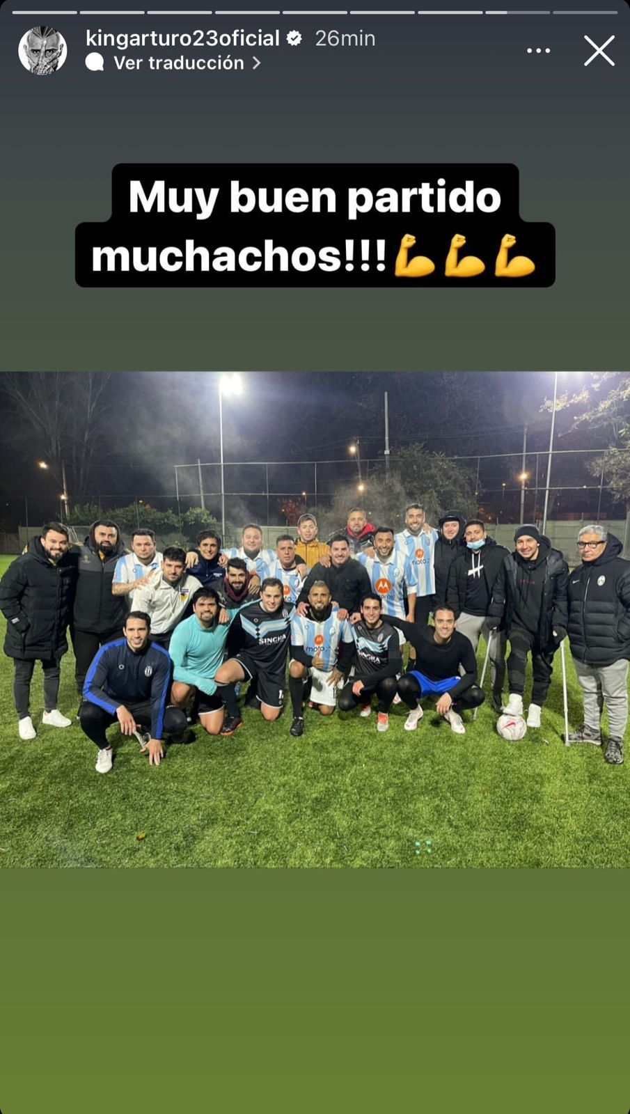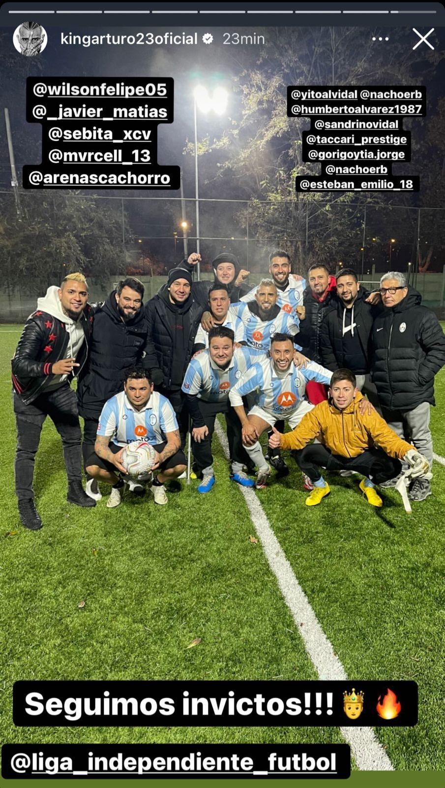 En las dos imágenes restantes el por ahora jugador del Inter de Italia, donde comparte equipo con los argentinos Lautaro Martínez y Joaquín Correa, Vidal mostró al equipo con el que juega en sus días de vacaciones en su país de origen. "Muy buen partido muchachos" y "Seguimos invictos" fueron las palabras que eligió para celebrar el triunfo en su picadito de viernes por la noche.