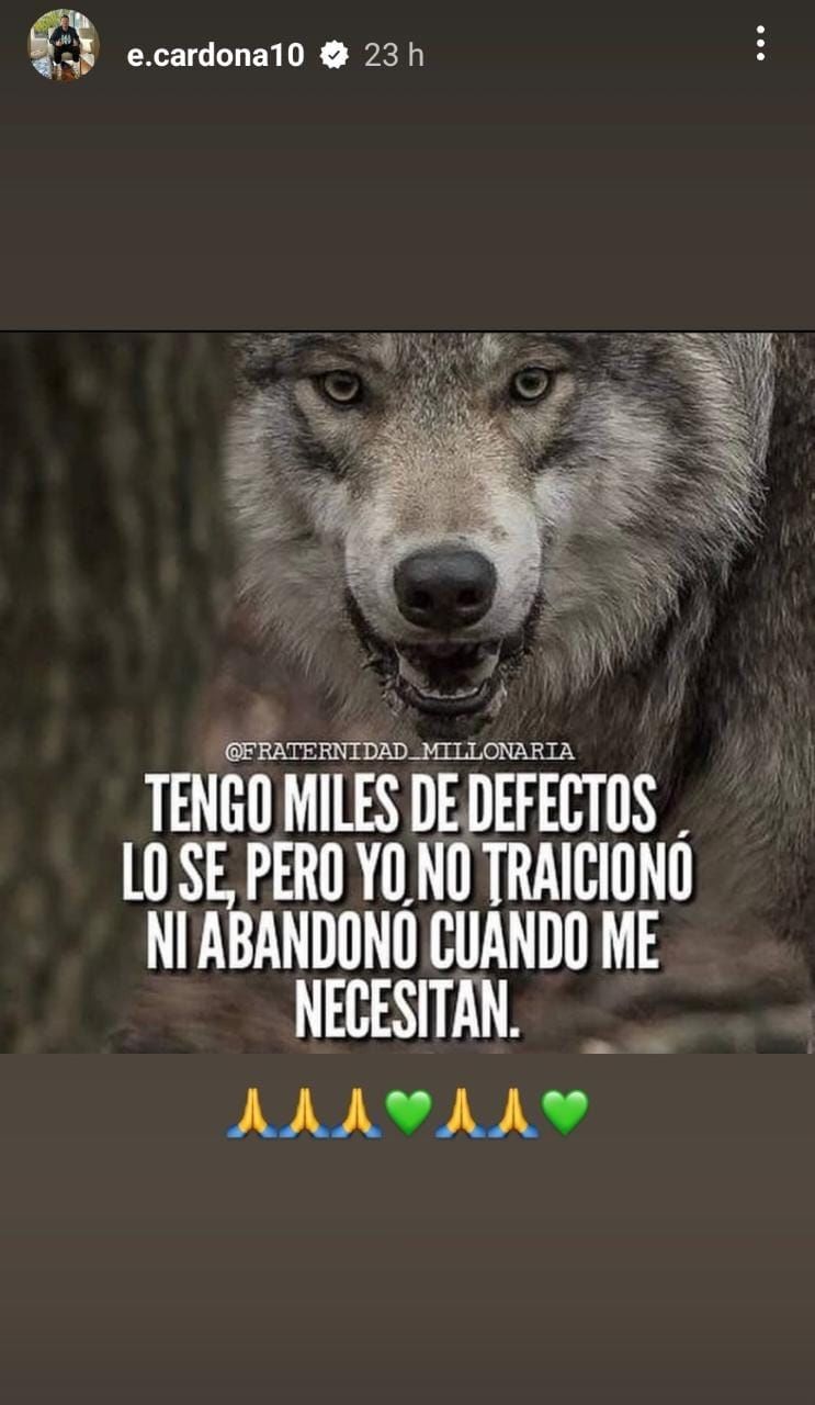 "Tengo miles de defectos. Lo sé. Pero yo no traiciono ni abandono cuando me necesitan", posteó Cardona en las historias de su cuenta personal de Instagram.