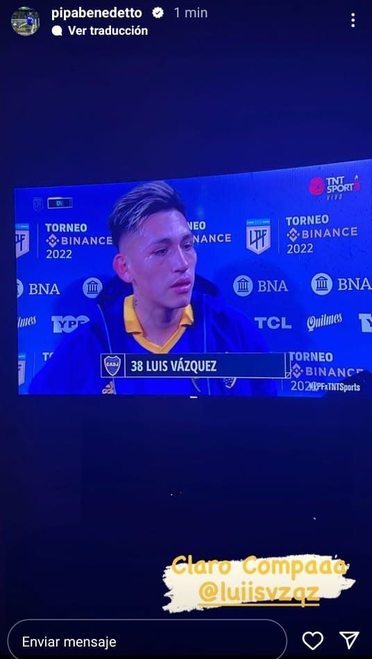 En medio del mal momento de Boca, uno de los aspectos más preocupantes era la mala racha que atravesaban sus número 9: la última vez que un delantero centro del Xeneize marcó había sido el Pipa ante Tigre, por la fecha 3 del campeonato. Este domingo, Vázquez rompió este "maleficio" y Benedetto lo saludó por Instagram: "Claro compa!", escribió el delantero junto a una foto del 38 en su televisor.