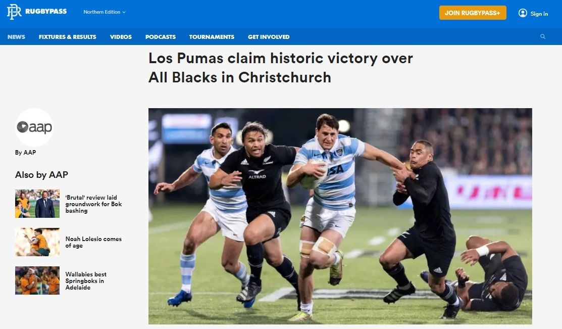 Por otro lado, Rugby Au de Australia tituló el triunfo albiceleste como "Argentina hizo historia en Nueva Zelanda y aumentó la presión sobre Ian Foster" y consideró que Los Pumas jugaron con "pasión y físico haciéndose dueños de los breakdowns".