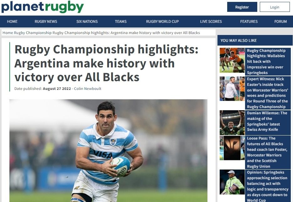 "Todo el mérito es de Los Pumas, que una vez más estuvieron absolutamente magníficos", apuntó Planet Rugby, que además sentenció que este resultado es una "catástrofe" no sólo para Ian Foster sino también para todo el rugby neozelandés.