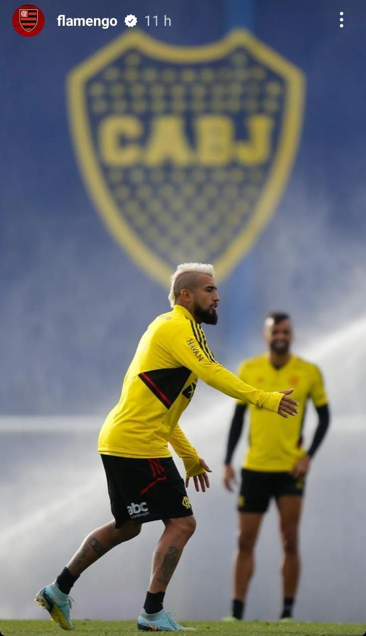 Si bien el Flamengo posteó en sus redes varias imágenes de su práctica en las que se lo podía ver a Arturo Vidal en Casa Amarilla (Boca ya no entrena más habitualmente ahí, lo hace en Ezeiza), la que más ruido hizo fue la que subió a las historias de la cuenta oficial del club en Instagram. Enseguida tuvo mucho rebote y se hicieron memes al respecto.
