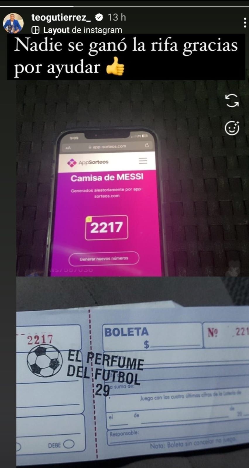 El costo de los números de la rifa era de unos 20 mil colombianos, equivalente a unos 1.400 pesos argentinos. “Es una camiseta que me regaló Messi y ahora tengo la oportunidad de que la gente se la gané, que participen con una rifa de 20 mil pesos, para que puedan aportarle un juguete a los niños pobres y es una camiseta que está firmada. Hay una amiga que me dijo que vale 100 mil dólares, no la quise vender, y la idea es que la gente se la gane y que puedan estar felices, y darle un regalo a sus hijos", comentó Teo Gutiérrez, a la hora de organizar la movida.