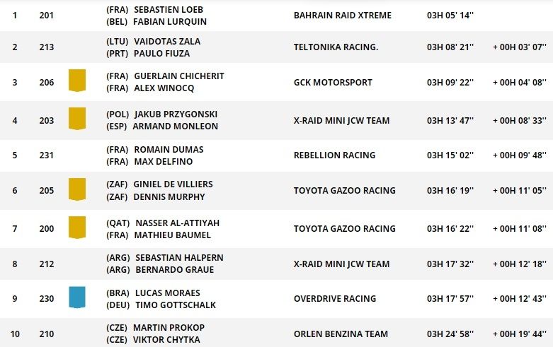 En el último intermedio, Loeb contaba con 3:42 respecto a su inmediato perseguidor. El francés completó la etapa en 3h05:14, 3:07 mejor que Zala y con 11:08 de ventaja respecto a Al-Attiyah. En la general, el catarí le saca 1h40:58, pero el alsaciano ya es tercero tras superar a Lategan y está a 19:09 de Lucas Moraes, segundo a 1h21:57 del líder.