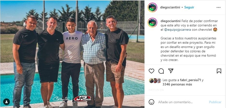 Ante esto, el equipo que dirige Gustavo Lema se puso a trabajar para encontrar a su reemplazante y en pocas horas lo consiguió. Se trata de Diego Ciantini, un piloto que ya estuvo dentro de la estructura y que tendrá su merecida revancha. "Feliz de poder confirmar que este año voy a estar corriendo en el @equipojpcarrera con Chevrolet", escribió el joven de 24 años en Instagram.