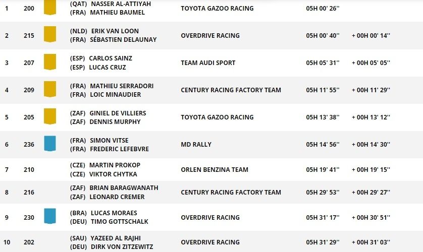 A 200 kilómetros para el final, Van Loon contaba con 2:20 sobre Yazeed Al Rajhi y 4:16 respecto a Baud. A continuación, el saudí perdió una minutada y se descolgó de la lucha por las primeras posiciones. Al-Attiyah pasaba a la segunda plaza, pero a más de seis minutos de Van Loon en el kilómetro 269, donde Laia Sanz (Astara) marchaba undécima.