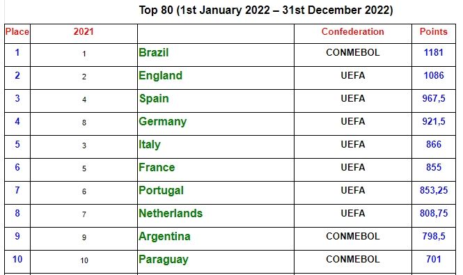 "La SERIE A brasileña es la mejor liga del mundo por segunda vez en la historia del ranking anual IFFHS lanzado desde 1991. La PREMIER LEAGUE inglesa es segunda por quinta vez en 6 años (1ª en 2019). La LIGA española, que sube un puesto, se sitúa por delante de la BUNDESLIGA (8ª en 2021) mientras que la SERIE A italiana pierde 2 puestos y se sitúa por delante de la LIGUE 1 francesa", escribió la IFFHS.