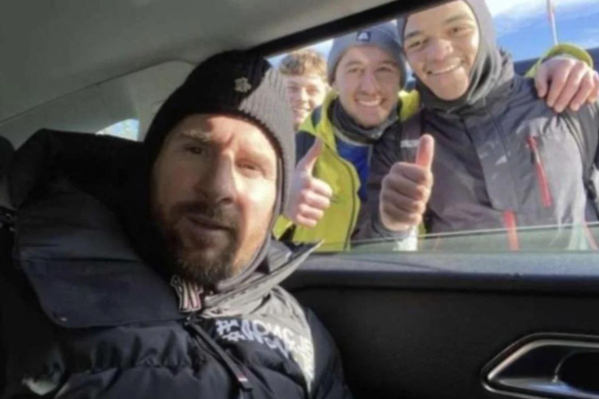 El pueblo más cercano a Crans-Montana, donde estos días se registraron temperaturas mínimas de siete grados bajo cero, es Sierre. Apenas viven 20 personas allí, pero algunos jóvenes reconocieron a Messi, quien posó alegremente para las fotos desde su auto.