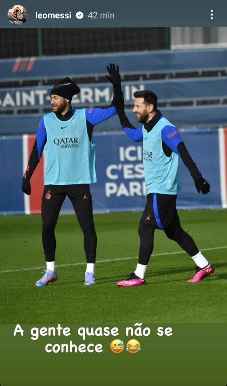 "A gente quase não se conhece (casi nada nos conocemos nosotros, en castellano)", escribió Messi en el idioma de Neymar, junto a dos emojis de risa. La imagen que eligió para subir es una de ellos dos chocándose la mano en el entrenamiento de este lunes del Paris Saint Germain.