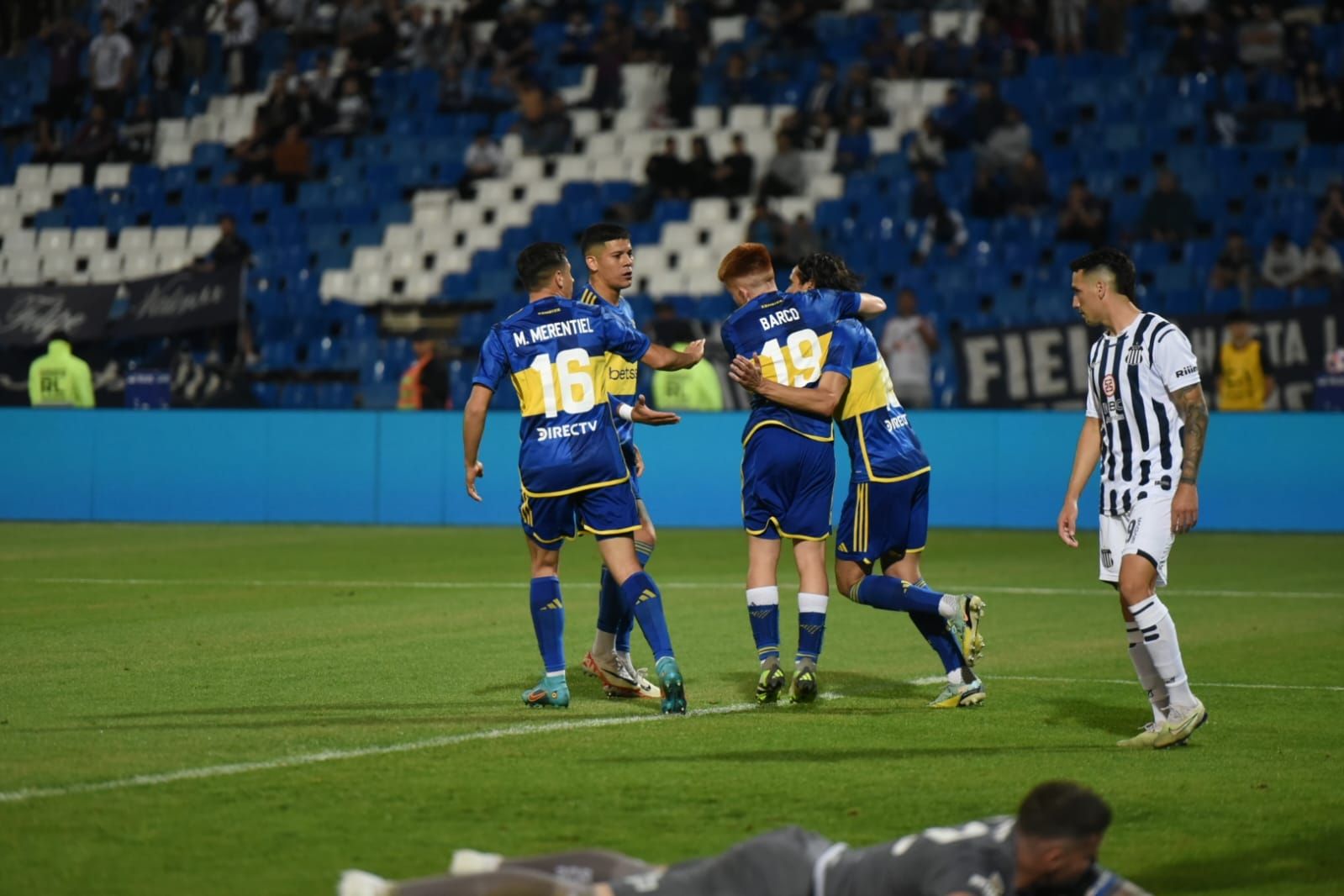 En una de las tantas ocasiones de gol generadas, Edinson Cavani buscó dar un pase pinchado para Miguel Merentiel, que fue despejado por la defensa. En el rebote, el delantero volvió a recibirla pero su remate se fue desviado. Finalizada la jugada, el Matador recibió una recriminación de Valentín Barco, que exigía un pase a pocos metros, el cual no llegó.