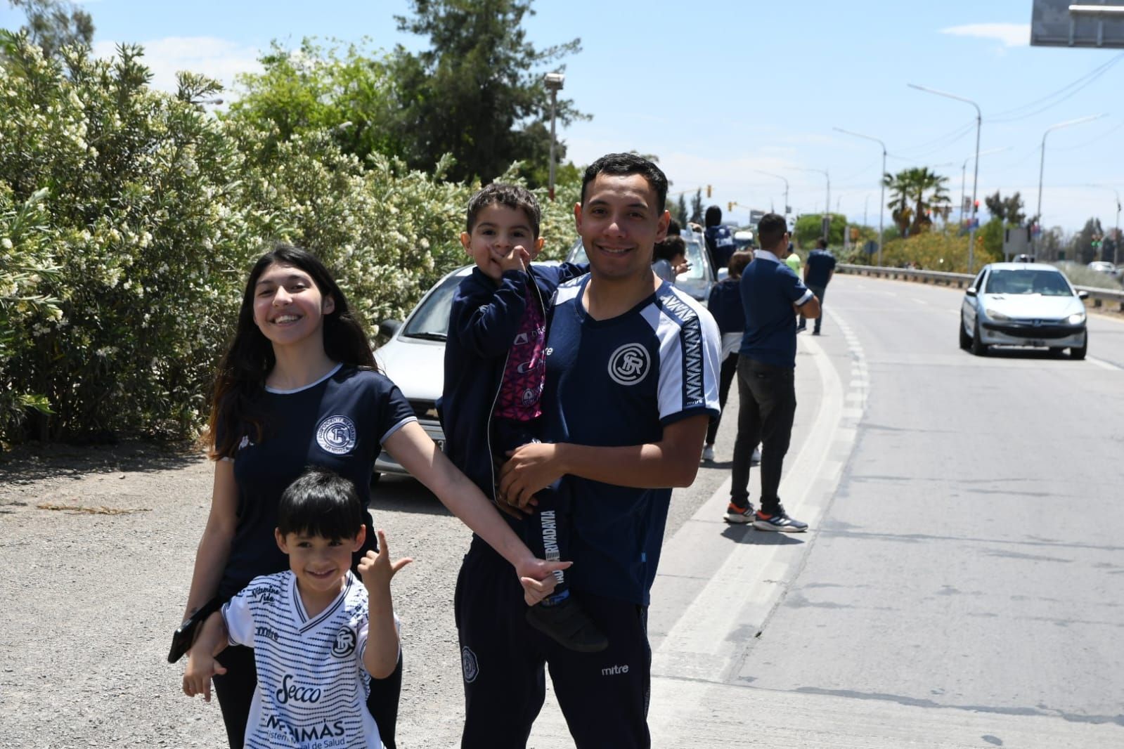 La calles se tiñeron de azul. Gran marco de público aguardaba en la reconocida intersección de Ruta 40 e Independencia. Colas de autos que están apostados al costado de la ruta. Habrá concentraciones también en otras intersecciones.