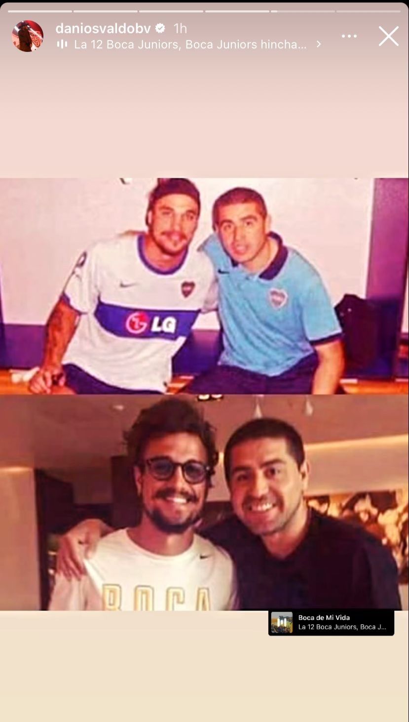Además, Osvaldo, que tuvo dos etapas en Boca cuando Angelici era presidente, subió varias imágenes junto a Riquelme. Una de ellas es en un vestuario luego de un amistoso en 2011 entre el Xeneize y el Espanyol, club donde jugaba el italo-argentino. Otra es ya como jugador azul y oro en una concentración.