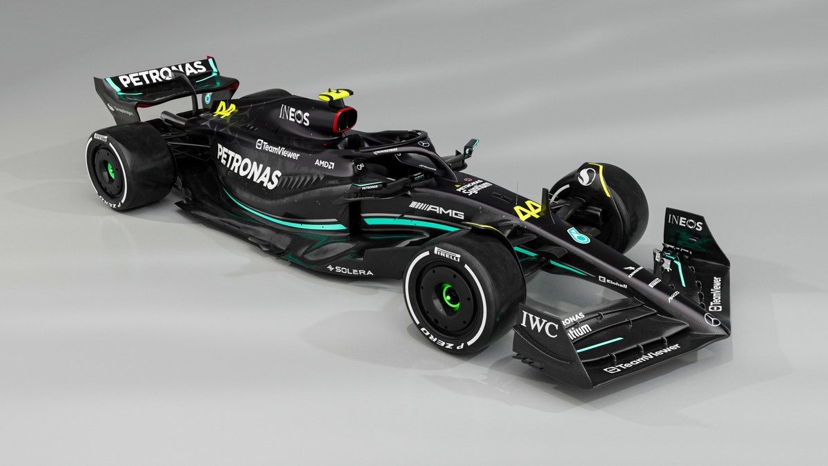 El equipo británico fue quien sorprendió a todos cuando dio a conocer su flamante unidad. Regresó al color negro que utilizó hace tres temporadas, aunque, en esta oportunidad, no tiene que ver con la lucha de Lewis Hamilton contra el racismo si no que la decisión se debe al deseo de conseguir el máximo ahorro de peso, ya que gran parte del mismo está sin pintar y funciona como fibra de carbono en bruto. El equipo contó que se trata de un chasis significativamente más liviano, con geometría de suspensión delantera revisada, ajustes del sistema de enfriamiento y un concepto aerodinámico refinado basado en el aprendizaje del 2022.