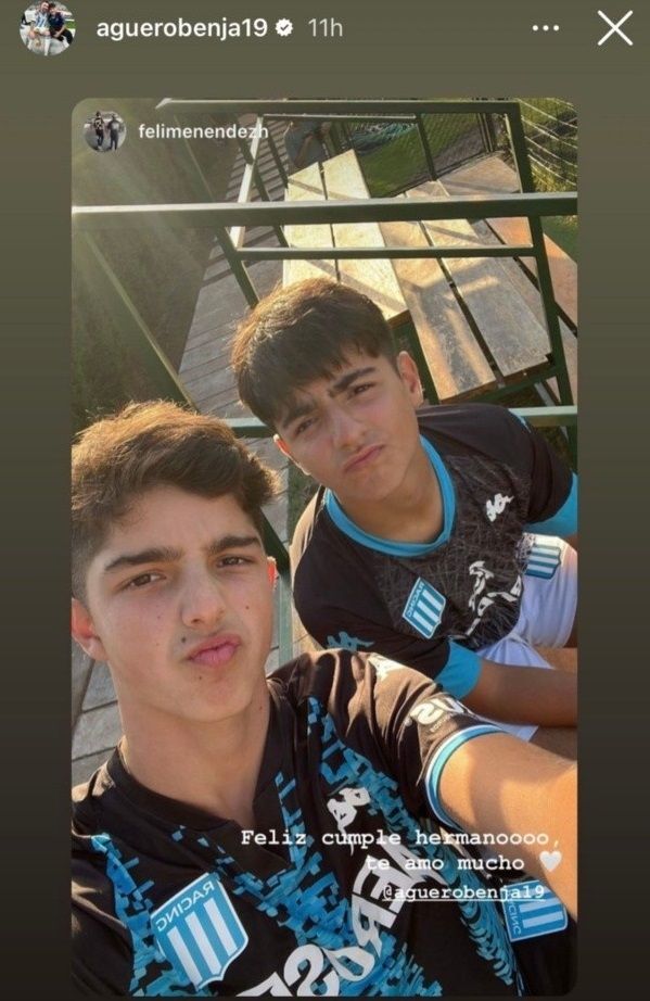 Sin embargo, Benja sorprendió a todos. Es que, en las últimas horas, compartió una historia en Instagram donde uno de sus amigos lo saludaba por su cumpleaños (cumplió 14 años el 19 de febrero) y ambos aparecen vestidos con la ropa de Racing, sí, de Racing. Al ver la foto, muchos fanáticos del Rojo reaccionaron y se armó un particular debate.