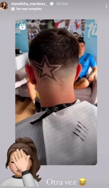 Mandinha, la esposa de Martínez, fue una de las primeras en reaccionar al corte y escribió "otra vez", agredando un emoji de una mujer tapándose la cara y uno de risas. Durante la Copa del Mundo, tras perder el primer partido con Arabia Saudita, Dibu también había modificado su look pintándose de celeste y blanco uno de los parietales.