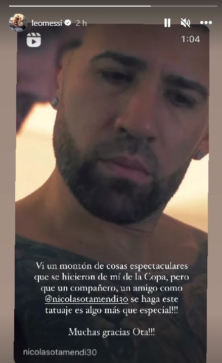 Sí, el defensor central titular se tatúo a su amigo en las costillas, justo debajo de la axila derecha. El zaguero del Benfica tiene muchos tatuajes, pero este es especial y sacudió al capitán de la Scaloneta, que se mostró movilizado por el gesto de su compañero: "Vi un montón de cosas que se hicieron de mi y de la Copa. Pero que un compañero, un amigo como Nico Otamendi se haga este tatuaje es algo más que especial! Muchas gracias, Ota!”, escribió la Pulga en Instagram.