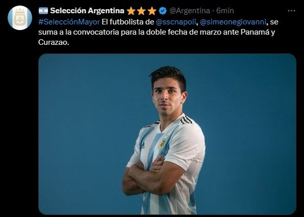 Días atrás, Lionel Scaloni presentó la lista de jugadores que estarán presentes en los amistosos que la Selección argentina disputará ante Panamá (23/03) y Curazao (28/03), pero este jueves sumó a un nuevo futbolista a la convocatoria. Se trata de Giovanni Simeone, delantero está atravesando un buen presente en Napoli y pedía a gritos una oportunidad.