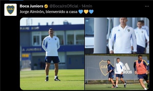 "Jorge Almirón, bienvenido a casa", con esa simple frase, acompañada por tres fotos del entrenamiento de este lunes, Boca presentó en las redes sociales al entrenador que ocupará el cargo que dejó vacante Hugo Ibarra días atrás.