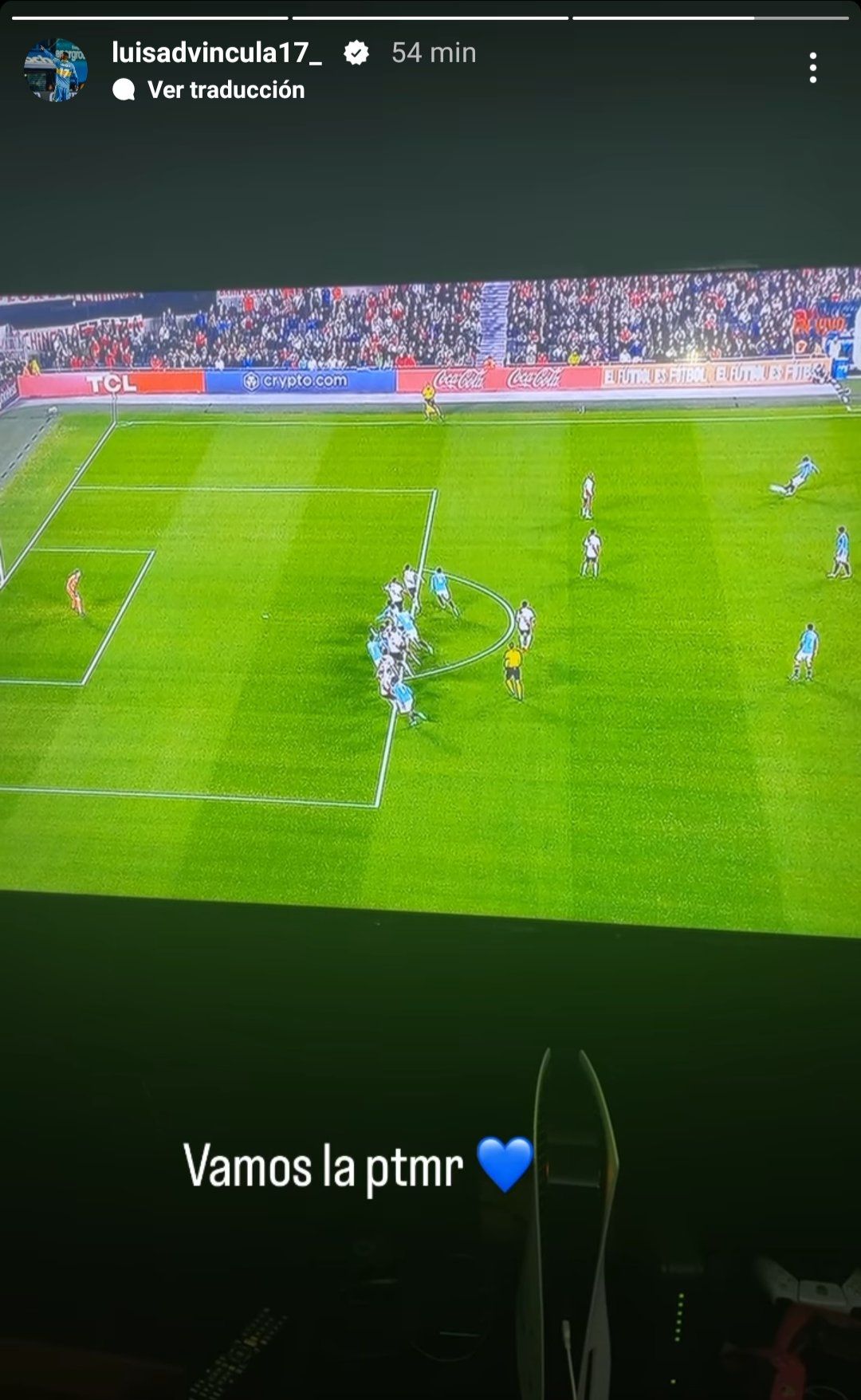 En Instagram, el peruano, que convirtió un gol importantísimo ante Deportivo Pereira, hizo un posteo bastante particular. Cuando Ignacio convirtió el primer gol del conjunto visitante, el defensor xeneize publicó una foto de su televisor con el partido y escribió: "Vamos la ptmrrr".