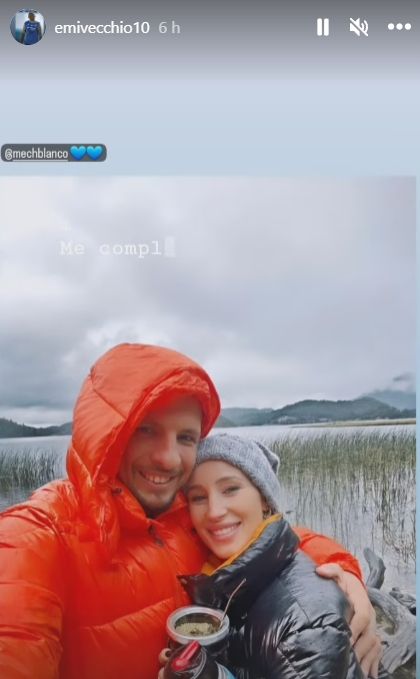 Tras esos meses de cierta incertidumbre, este fin de semana fue el momento en el que Vecchio y Mechi Blanco confirmaron su relación. Primero fue ella quien subió algunas imágenes a Instagram el domingo y este lunes fue el turno de el jugador de Racing, quien posteó una foto de ambos tomando mate: "Me complace amarte, disfruto acariciarte y ponerte a dormir, es escalofriante", recitó el volante en su story acompañada de la canción "Disfruto", de Carla Morrison.