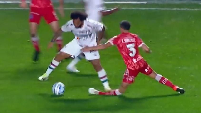 El Cheche, ex Independiente Rivadavia, intentó seguir la gambeta del lateral brasilero pero se trabó con su pierna derecha en el suelo y dobló mal la articulación, lo que le causó una durísima lesión.