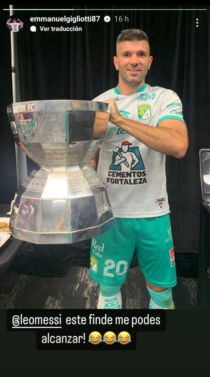 En ese León campeón del 2019, jugaba como centrodelantero el argentino Emmanuel Gigliotti, actual jugador de Nacional de Uruguay, quien utilizó las redes sociales para referirse a la gran definición del certamen y dejar un mensaje especial para Lionel Messi.