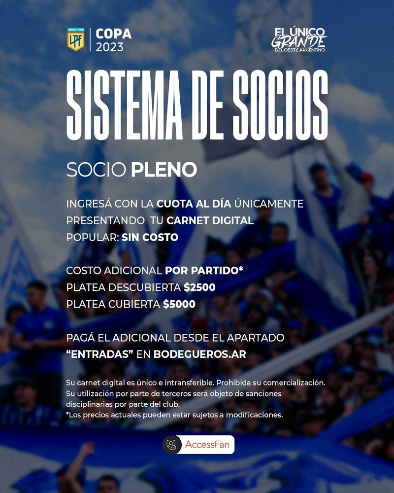 -Socios plenos: tienen acceso a la popular gratis, pero en caso de preferir plateas (descubierta o cubierta), deberá abonar un canon adicional por partido.