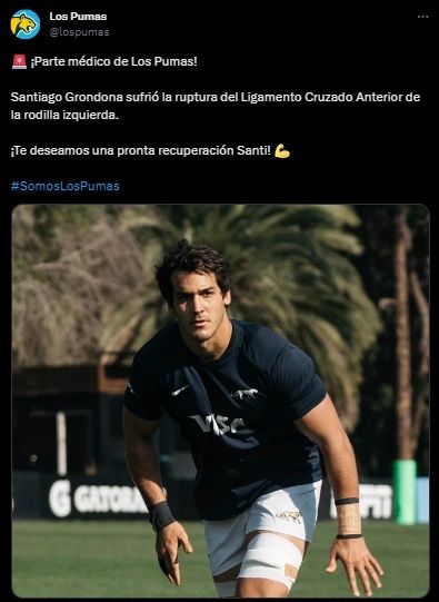 Los Pumas venció el pasado sábado a su par de España pero la victoria quedó empañada por lo sucedido con el tercera línea Santiago Grondona, quien dejó la cancha muy dolorido y encendió todas las alarmas. Ante esto, el cuerpo médico nacional le realizó estudios para conocer la gravedad de la lesión y se confirmó la peor noticia.