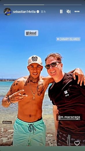 En otro de los posteos, aparece disfrutando de la playa. En sus historias de la misma red social, publicó una foto con la misma escenografía pero junto a su representante Martin Macazaga.