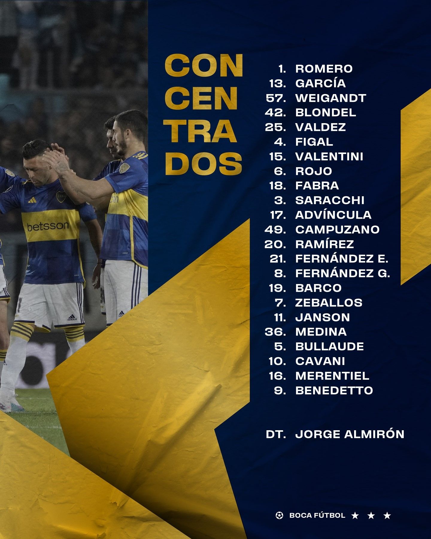 Para ese partido y en la recta final de la preparación, el entrenador ya definió los 23 futbolistas concentrados que lo acompañarán en el compromiso. La lista incluye gran parte de los jugadores que vienen siendo parte de la rotación pero también cuenta con cuatro ausencias importantes.