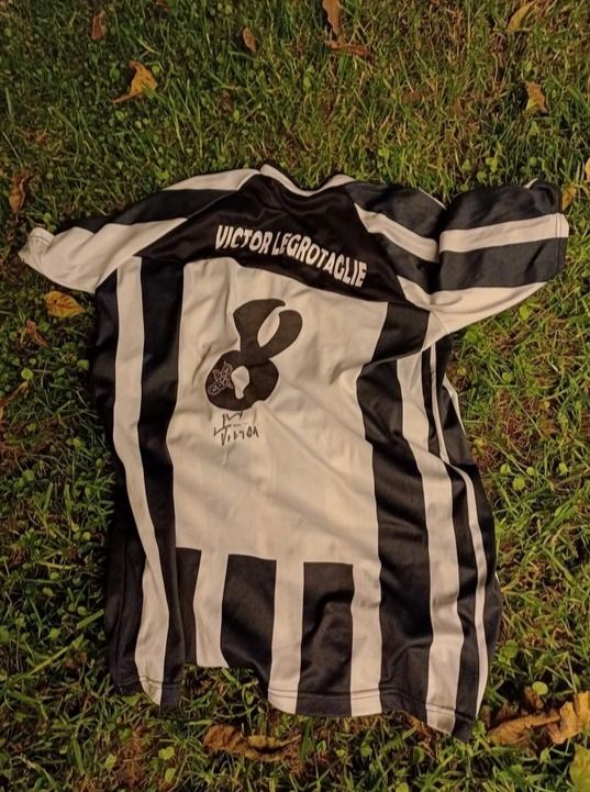 Dato: en los festejos de los 100 años de la fundación del club, la comisión directiva dispuso la confección de una cantidad limitada de camisetas iguales a las del año 1908, el de la fundación. Era a rayas blancas y negras y se obsequió a determinadas y escasas personas muy ligadas al club. La original.