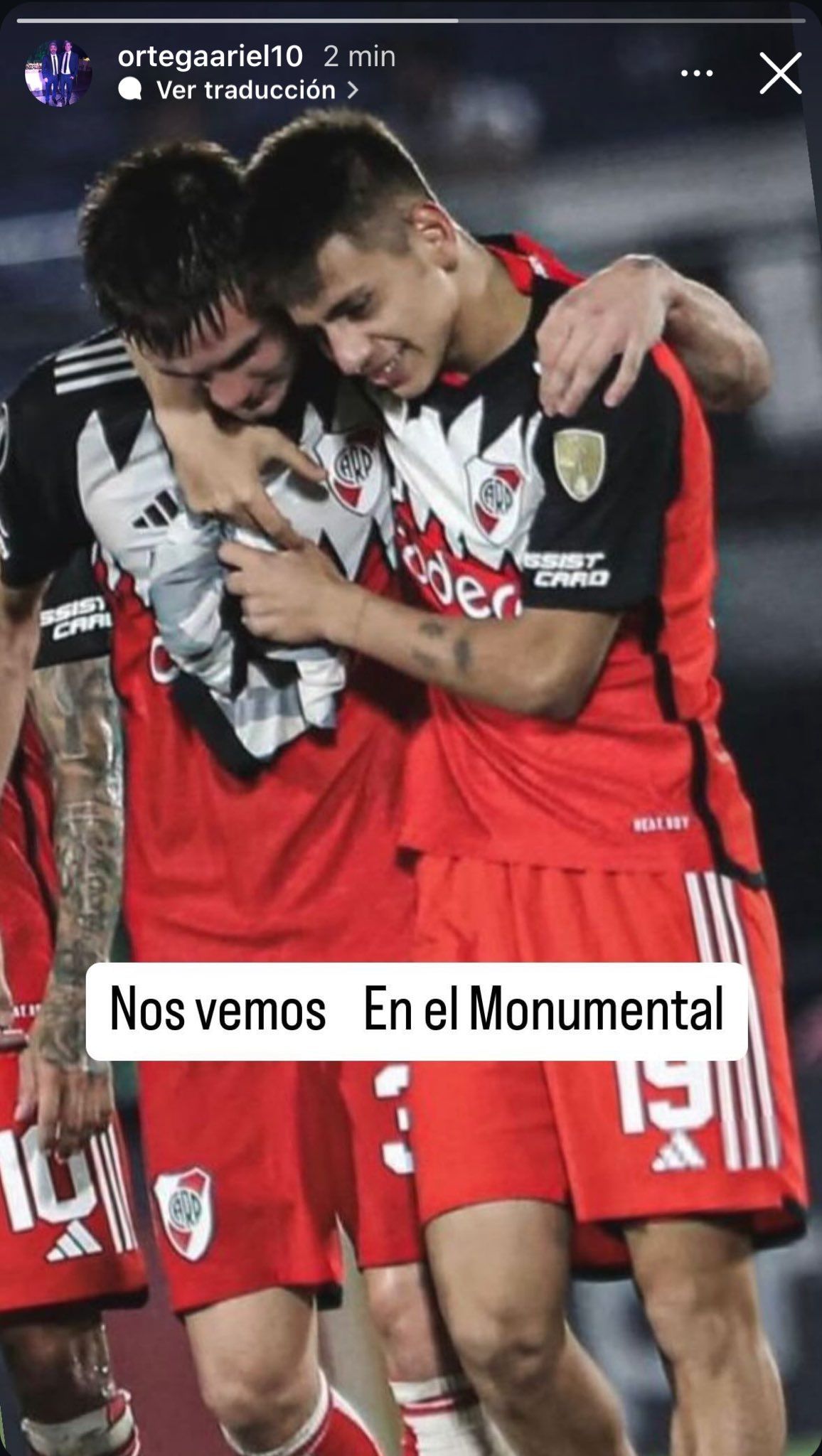 "Nos vemos en el Monumental", reza la leyenda que acompaña una foto de Franco Mastantuono y el Diablito Echeverri, la cual compartió una vez finalizado el partido. Ambos juveniles, que han demostrado tener nivel más que suficiente para este tipo de compromisos, estaban en el banco y no ingresaron para jugar un solo minuto. El Burrito le reprochó esto a Napoleón y, implícitamente, le exigió que los utilice en la revancha.