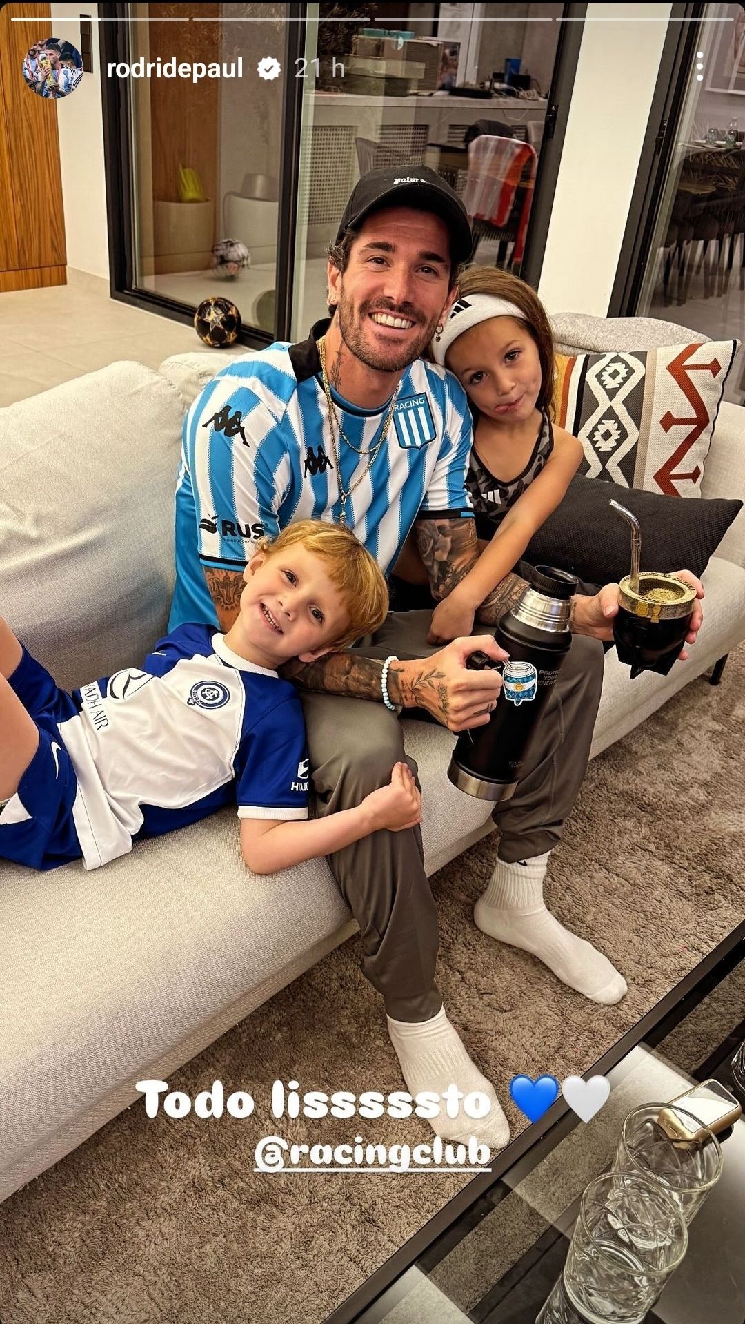 Tras el partido, se acomodó en su casa para ver la gran final. Fue en ese momento en el que subió su primera historia en la red social Instagram, con una foto junto a sus hijas, la camiseta de la Academia y la frase: "Todo lisssssto, Racing Club".