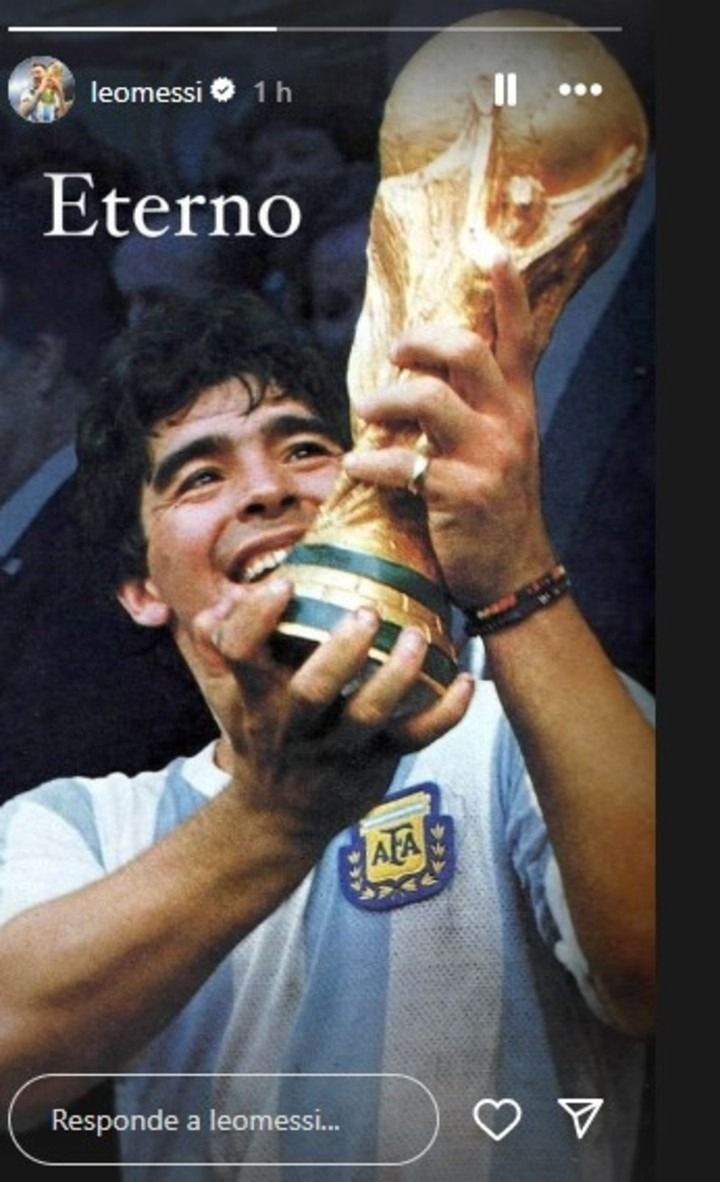 A cuatro años de la muerte de Diego Armando Maradona, el mundo del fútbol se unió otra vez para rendirle homenaje al Diez infinito. En un día cargado de emociones, Lionel Messi compartió en su cuenta de Instagram una emblemática foto de Maradona levantando la Copa del Mundo en México 86 y le agregó la palabra "eterno". La publicación resonó profundamente entre los seguidores del fútbol en las redes sociales, donde se reconociò la inmensidad del legado de Diego.
