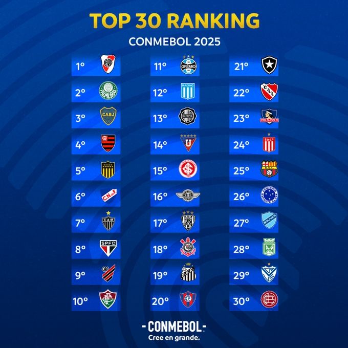 Como cada año, Conmebol dio a conocer su Ranking de Clubes, y Boca Juniors mantuvo el tercer lugar, solo detrás de River Plate y Palmeiras. Este listado no solo ratifica la relevancia del Xeneize en el fútbol continental, en base a un coeficiente que otorga puntos por rendimiento histórico y las últimas performances en torneos sudamericanos, sino que también influye directamente en su participación en el Repechaje de la Copa Libertadores 2025, donde buscará avanzar hacia la fase de grupos.