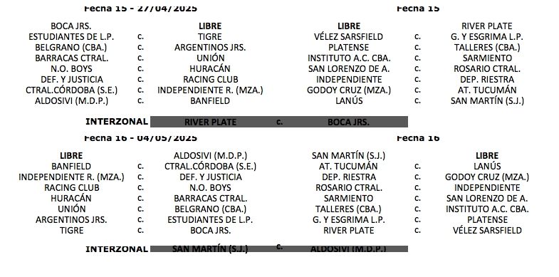El duelo que más expectativa generaba, como de costumbre, era el Superclásico del fútbol argentino. El primer Boca-River del año será en la fecha 15, el 27 de abril del año próximo, en el Estadio Monumental. Además, en la 8º fecha, se jugarán los duelos interzonales.
