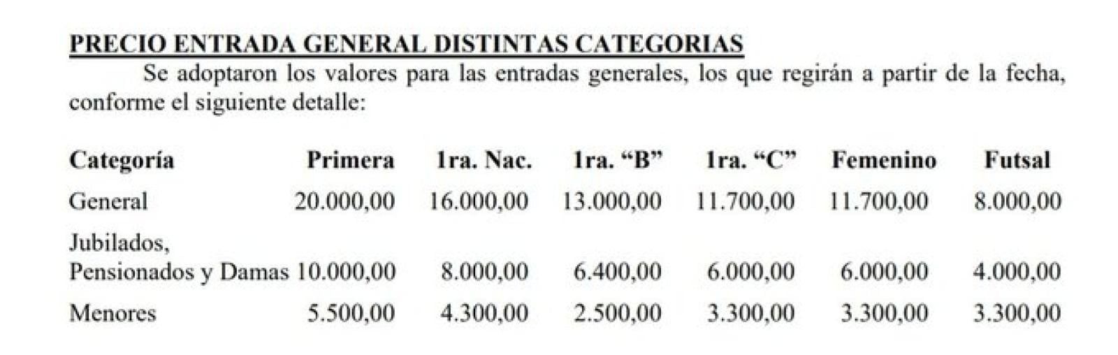 Por el lado de la Primera Nacional, contará con un precio en las entradas generales de $16.000. En la B Metropolitana costará $13.000 y en la Primera C, y el fútbol femenino, valdrá $11.700. Futsal, por otra parte, contará con una entrada general de $8.000.