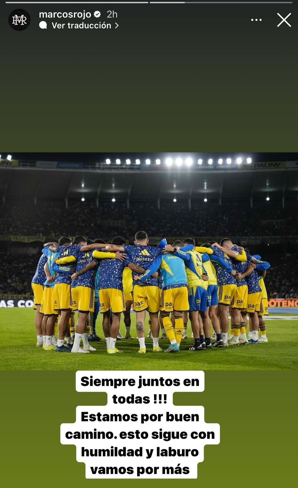 “¡Siempre juntos en todas! Estamos por el buen camino, esto sigue con humildad y laburo. Vamos por más”, arengó el defensor central a menos de 24 horas de la eliminación del torneo. Con este resultado Boca perdió la posibilidad de gritar campeón y, además, asegurar su participación en la próxima Copa Libertadores.