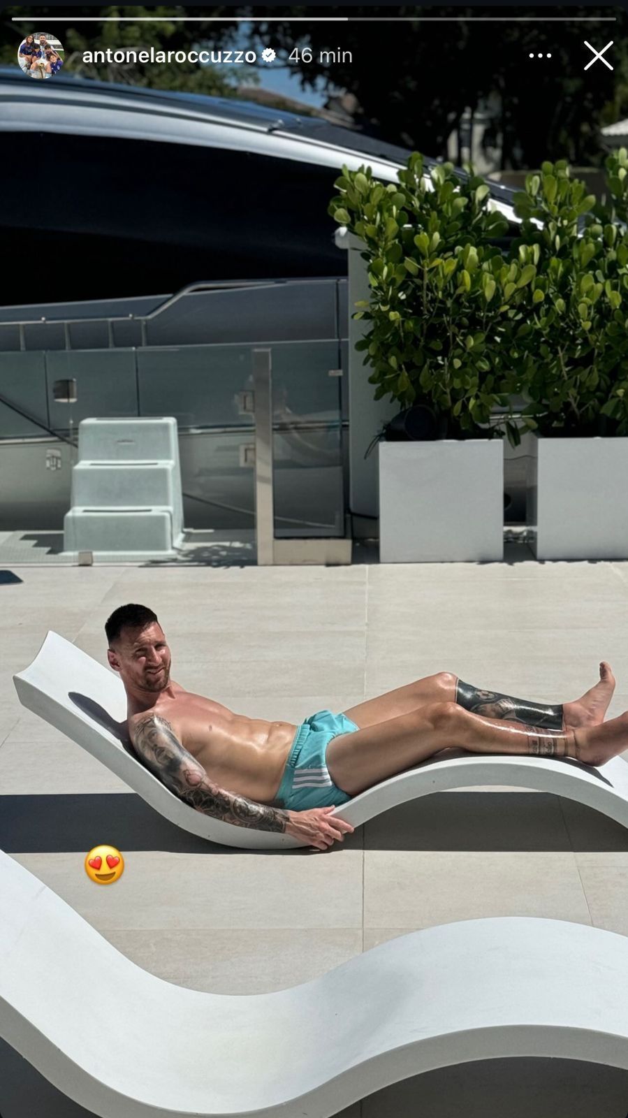 En horas de la tarde de este miércoles Antonela Roccuzzo, esposa del 10, compartió una foto en las historias de su cuenta de Instagram. La misma, que no tardó en viralizarse, consta del futbolista del Inter Miami mostrándose sonriente mientras toma sol en una reposera.