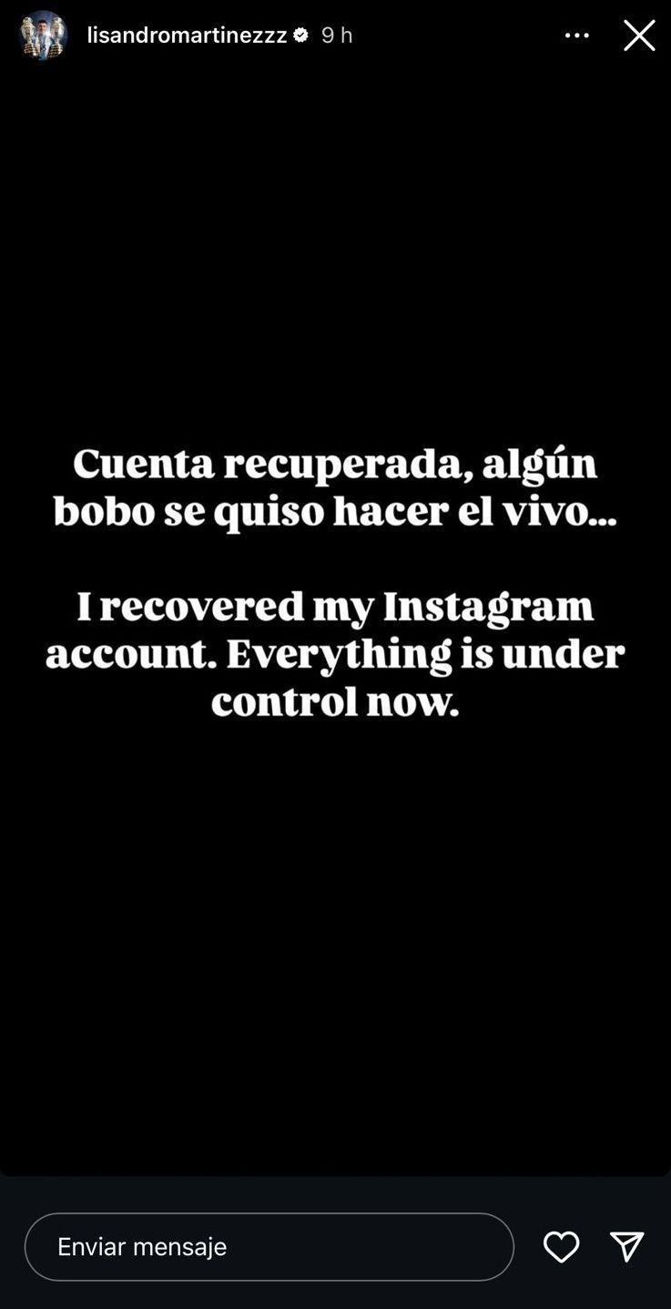 Finalmente, fue el propio defensor el que anunció que pudo recuperar su cuenta en la red social mediante una nueva historia. "Cuenta recuperada. Algún bobo se quiso hacer el vivo...", escribió el campeón del Mundial de Qatar 2022. Además, en otro texto, añadió: "Todo está bajo control ahora".