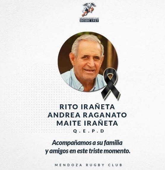 Con profunda tristeza, el Mendoza Rugby Club despide a Rito Irañeta, Andrea Raganato y Maite Irañeta.