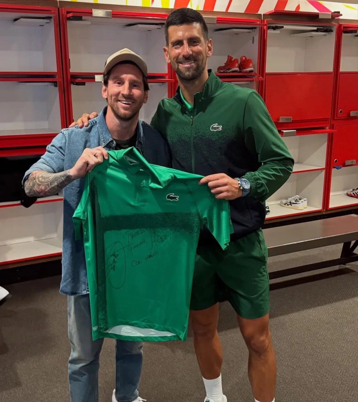 Nole y la Pulga comparten un sentimiento de mutuo respeto y admiración. El mes pasado, durante el Masters 1000 de Miami, aprovechando que se disputaba justo en la ciudad donde hoy vive y juega, y que no había podido sumarse a la convocatoria de la Selección argentina, el 10 aprovechó para ver competir al serbio en el torneo y se sacaron una foto juntos que generó furor en redes sociales.