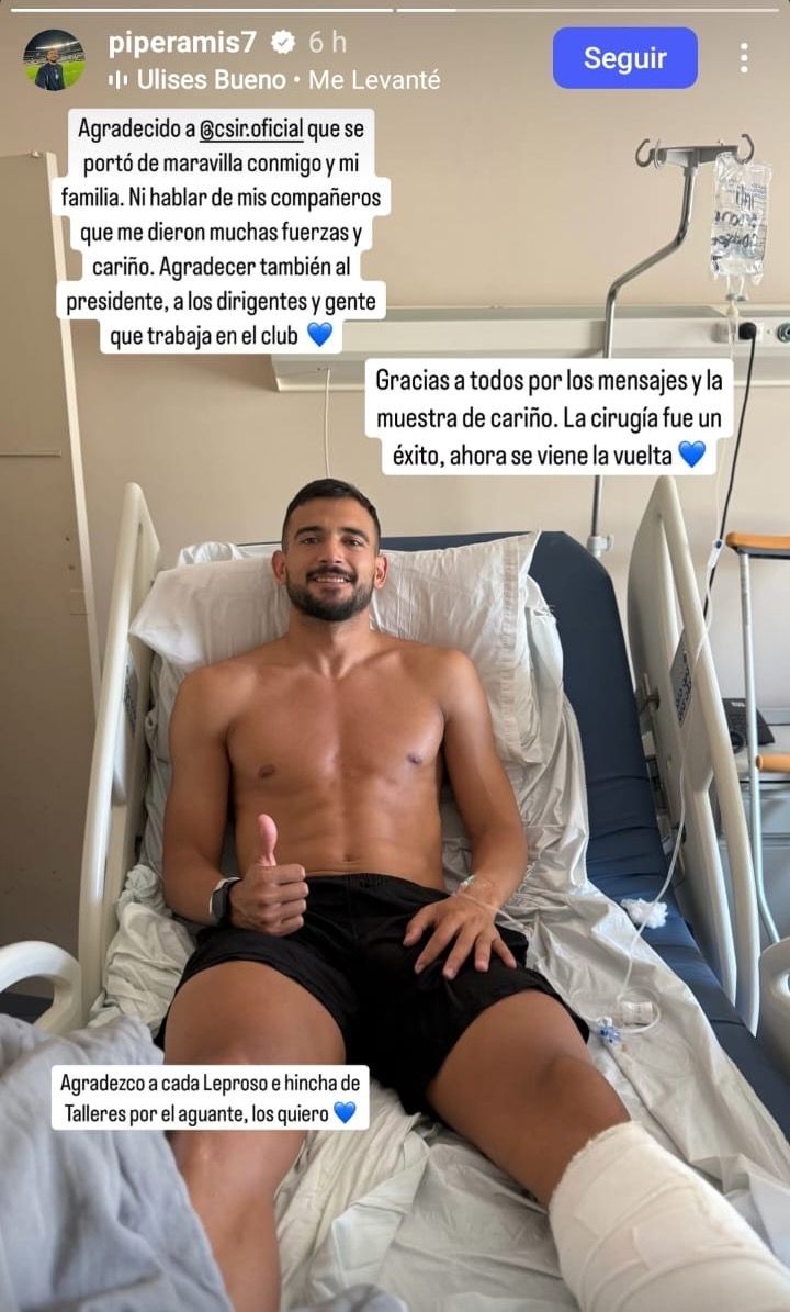 Luego, Ramis agregó: “Gracias a todos por los mensajes y la muestra de cariño. La cirugía fue un éxito, ahora se viene la vuelta”. Por último hubo un guiño para el público y los fanáticos de Talleres de Córdoba, que también tienen un grato recuerdo de él por su pasado futbolístico: “Agradezco a cada Leproso e hincha de Talleres por el aguante, los quiero”.